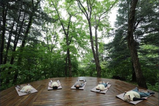 주변에 유명한 산으로 둘러쌓인 이곳은 계곡물과 울창한 산림으로 둘러싸여 힐링하기 좋은 휴양지입니다. 참나무류가 많은 천연림 지대와 낙엽송, 시원시원하고 길게 자라난 나무들이 이국적으로 아름다운 모습을 자아냅니다.