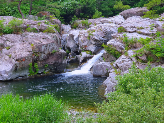 가평 가볼만한곳 아홉 번째, 용추계곡은 여름철 물놀이도 할 수 있고, 트레킹도 가능한 계곡으로 가평에서도 인기입니다. 가평군 칼봉산 900미터에서 발원하여 옥녀봉을 감싸듯이 흐르는 계곡으로 무려 길이가 24킬로에 걸쳐 와룡추, 무송암, 고실탄, 추월담 등의 용추 9곡이 있습니다.