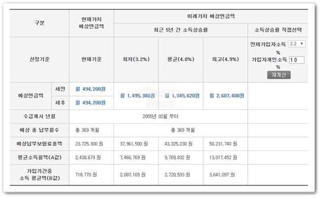 국민연금 수령액 알아보기