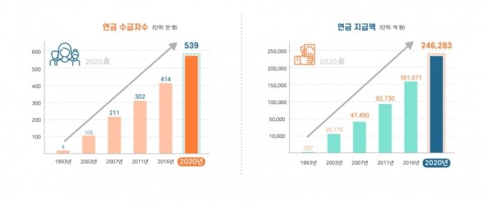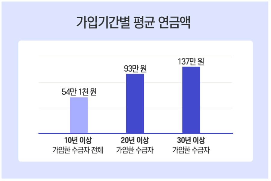 2020년 12월 기준, 20년 이상 가입자들의 평균 노령연금 수령액은 월 93만원 정도였다고 합니다.