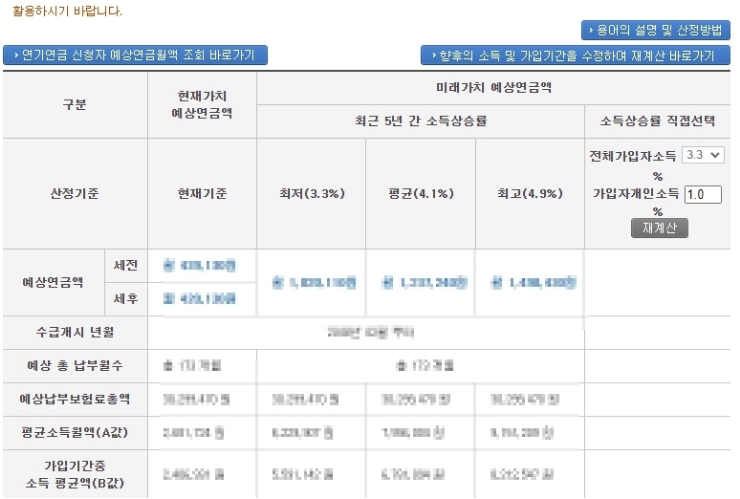 그래서 아직 수령액 조회가 되질 않았습니다. 빨리 국민연금 납부 재개 신청을 해서 나머지 5개월까지 깔끔하게 납부하고 다시 조회를 해봐야겠습니다.