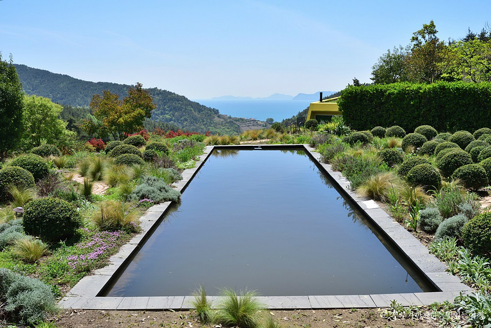 남해 가볼만한곳 베스트10 열 번째, 섬이정원은 경상남도 민간정원 제1호로 등록된 정원으로 차명호 대표가 2007년부터 다랑논을 가꿔 공원으로 조성했하여 남해 가볼만한곳 베스트 10으로 정말 인기 많은 곳입니다. 고동산을 병풍처럼 두르고 한려해상국립공원의 아름다운 바다가 내려다보이는 공원 같은 정원이라서 힐링 가득한 공간입니다.