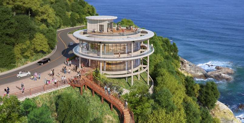 담력이 센 참가자는 발로 난간을 힘껏 밀어 바다 쪽으로 몸을 던져서 그네를 타기도 하는데 튼튼한 밧줄로 연결돼 있어 안전합니다. 전망대에서 계단을 걸어 내려가면 바다가 나와 풍경이 아름답습니다. 전망대 입장은 무료, 스카이워크 체험은 유료입니다.