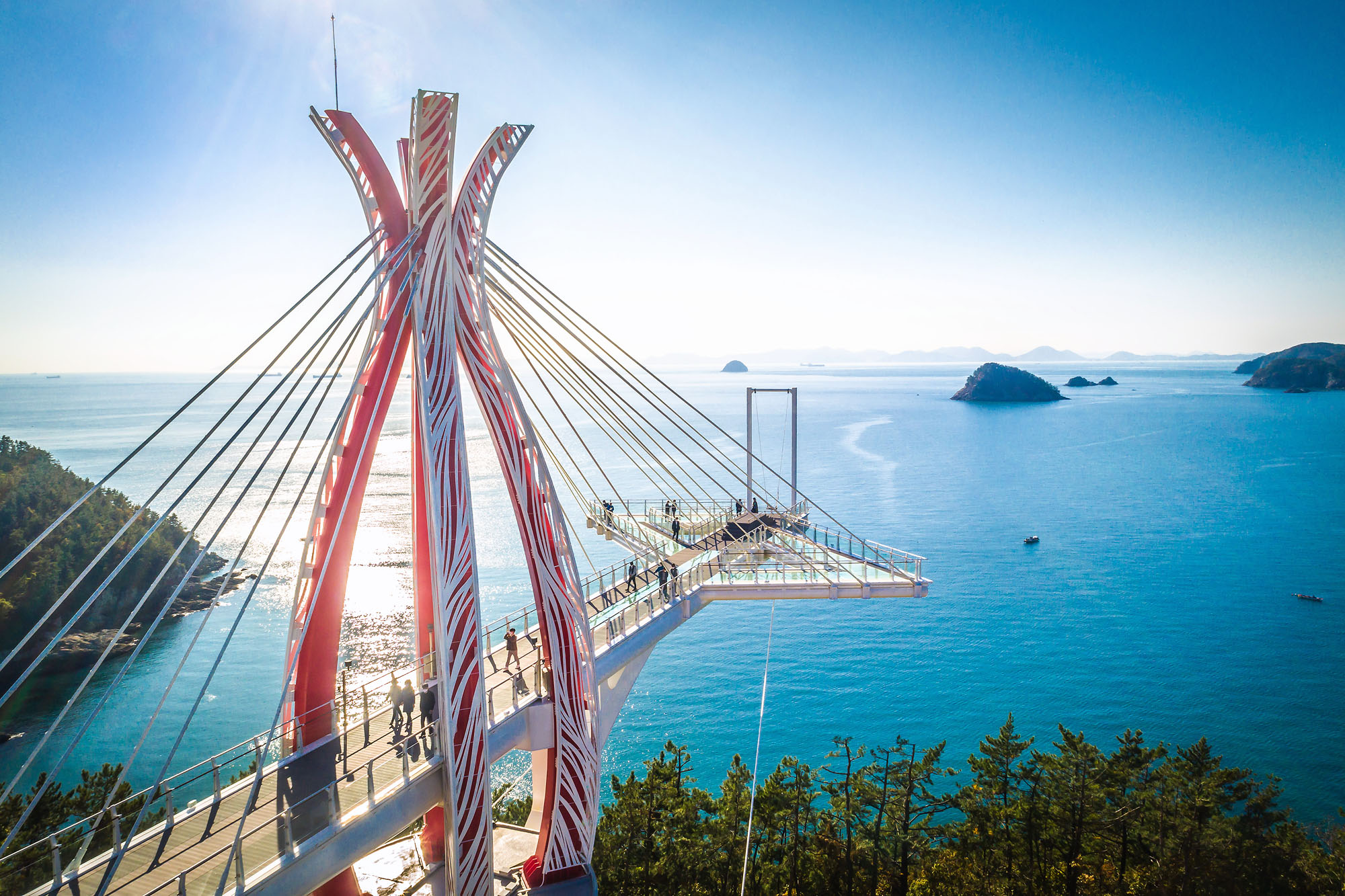 남해 가볼만한곳 베스트10 다섯 번째, 드라마 ‘여신강림’에서 주인공 차은우과 문가영이 남모를 상처를 서로 공유해가며 사랑을 키워가는 장면이 남해 설리스카이워크에서 촬영되면서 남해 가볼만한곳 베스트 10으로 핫하게 떠오른 곳입니다. 전국 최초 비대칭형 교량으로 웅장한 규모와 아름다운 외관을 자랑하는 곳이죠.