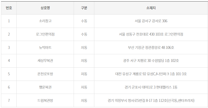 - 토요일 오후 8시부터 다음날(일요일) 오전 6시까지 로또 판매 정지.