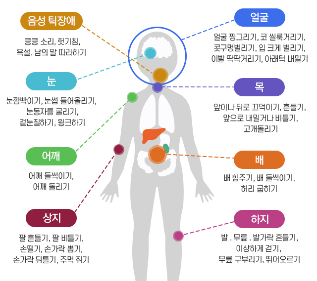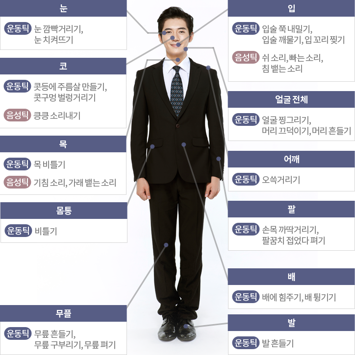 틱은 신체 어느 부위에서나 발생할 수 있는 불규칙하고 통제할 수 없는 원치 않는 반복적인 근육 움직임입니다
